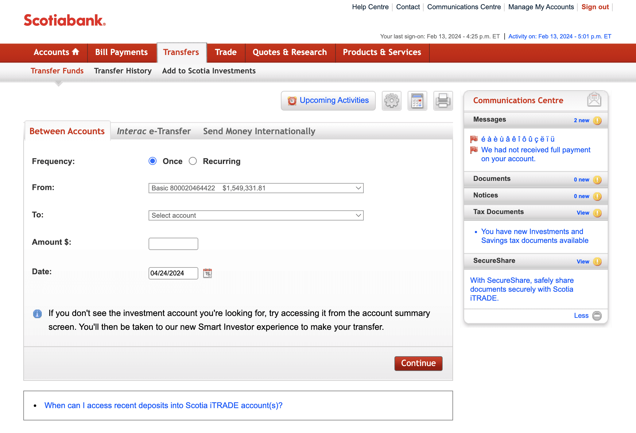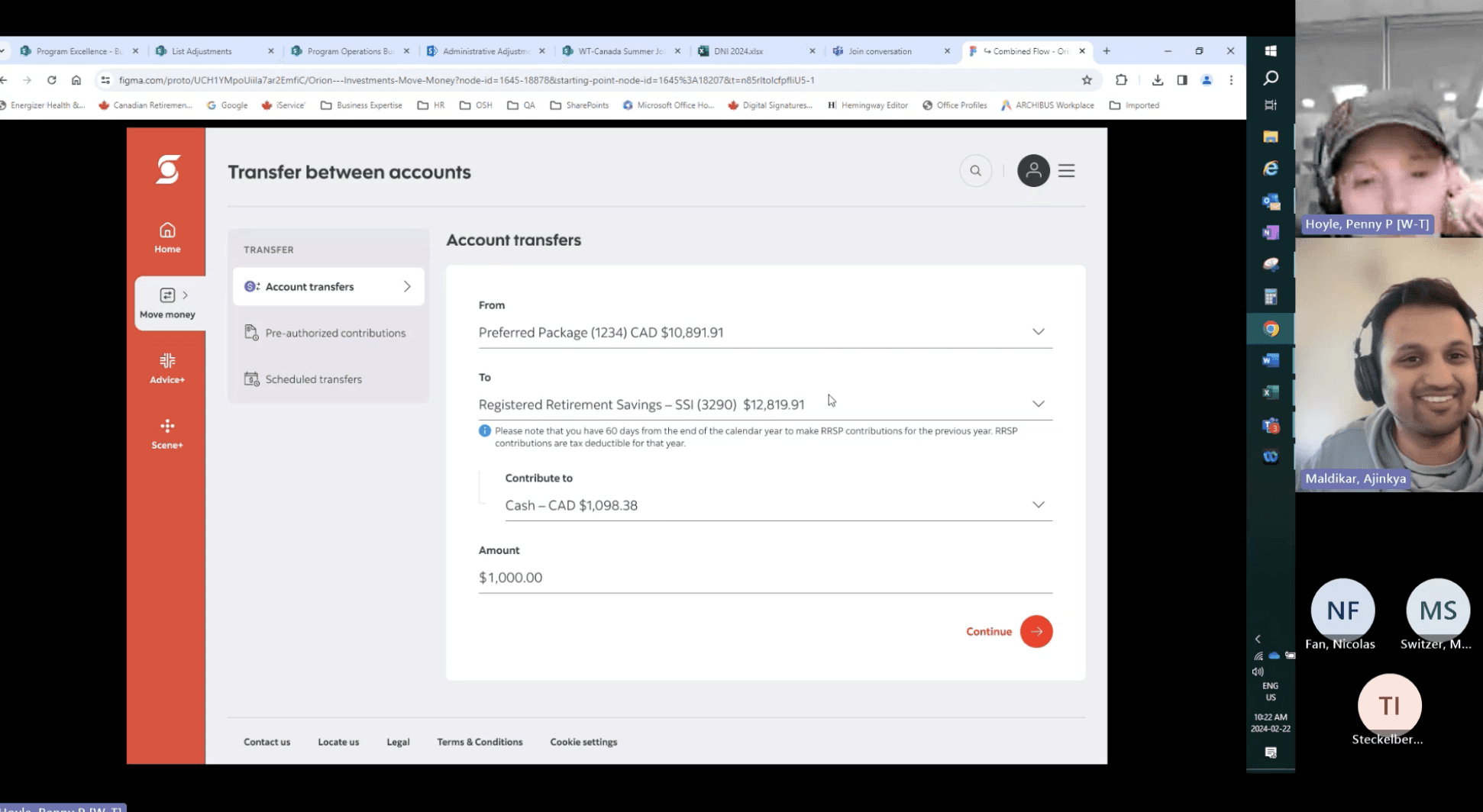 ✅ Our hypothesis that clients wanted to move their investment funds in the same way that they would for chequing, savings, and credit card accounts was correct as participants expressed that completing different tasks in the same form aligned with their mental models.