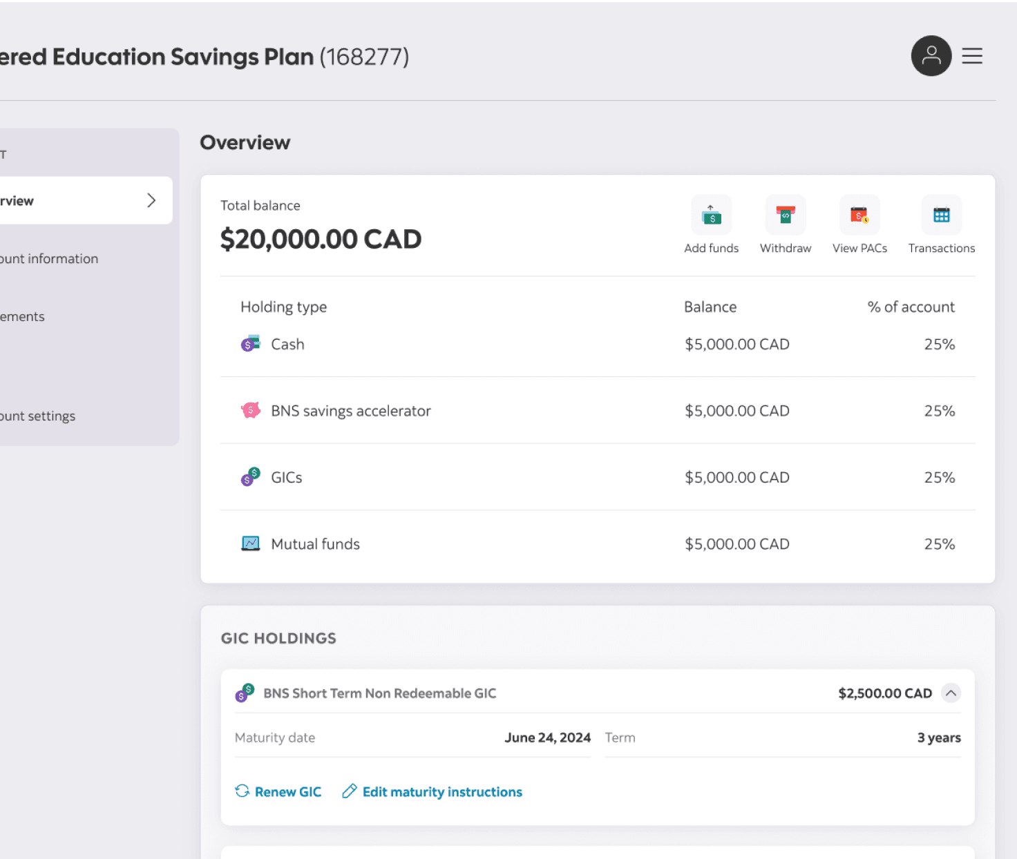 Scotiabank has been undergoing a complete transformation of its retail web banking platform. A significant challenge in this journey was redesigning the retail investment experience which had many problems that had manifested over the years. At first, the main goal was to modernize the experience with Scotiabank's new design system, however, through research and usability testing, this evolved to flattening the IA to unify fragmented experiences, and putting an emphasis on guidance and education.